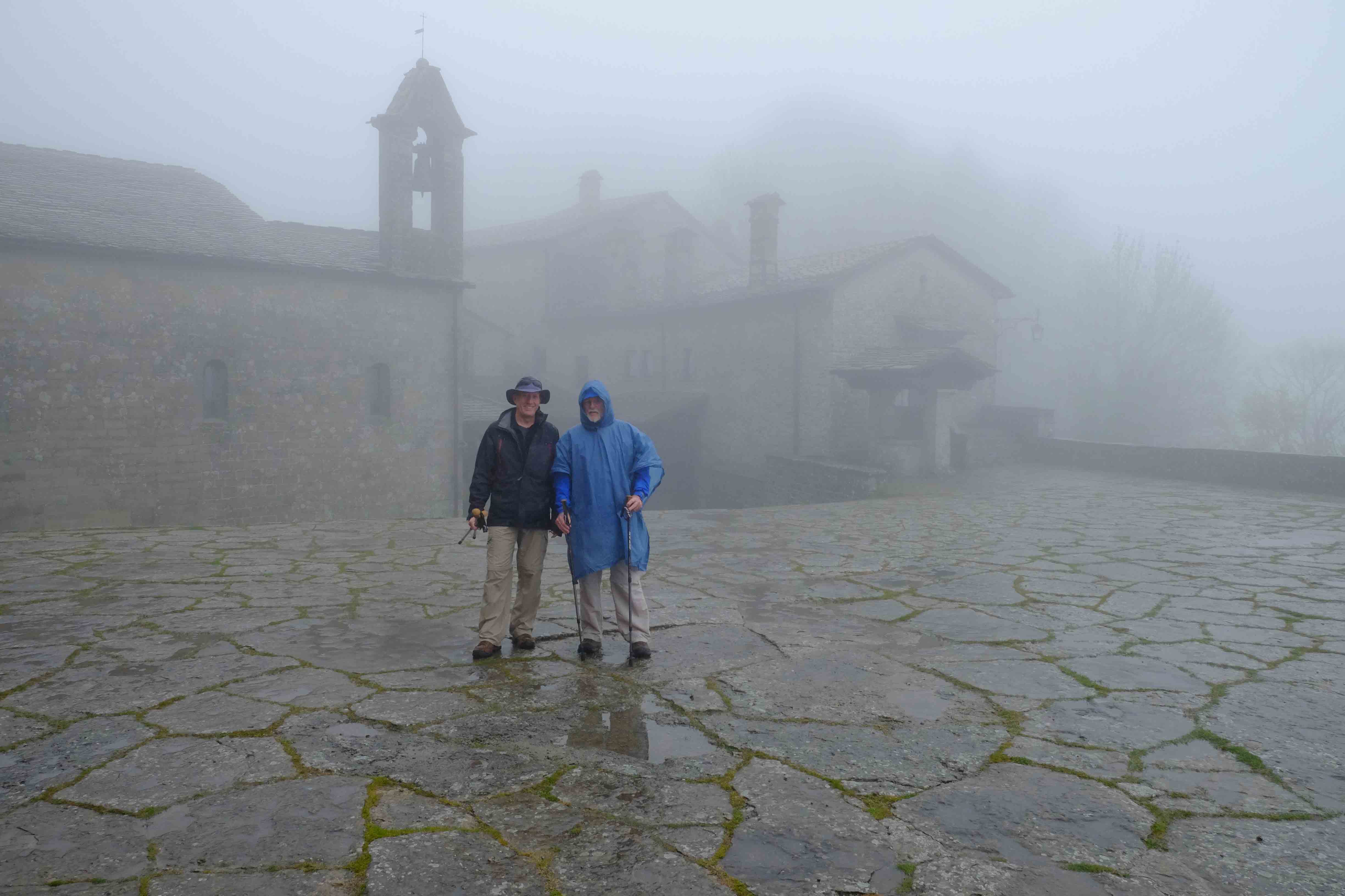 Hey Lynda, we got a driver to take us all just from Florence to la Verna today, because of all the luggage. Elena will be driving another van, a 9 seater Fiat Ducato, from tomorrow on while we walk, to act as support. And yes, the mist everywhere today was so beautiful. Everyone has their barnacle bottles now too!