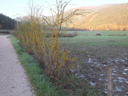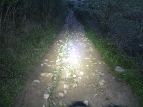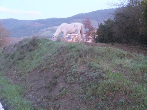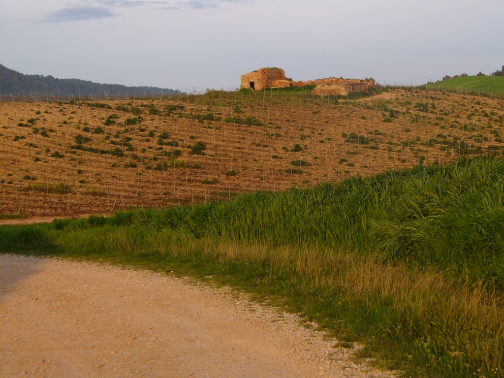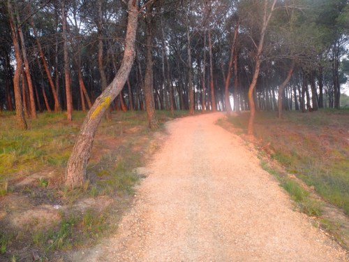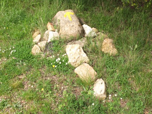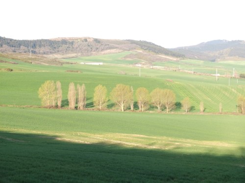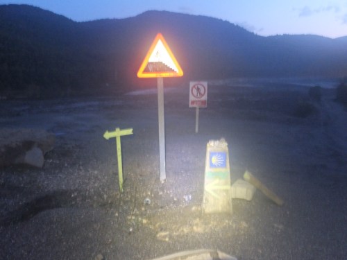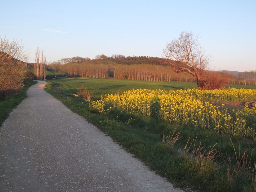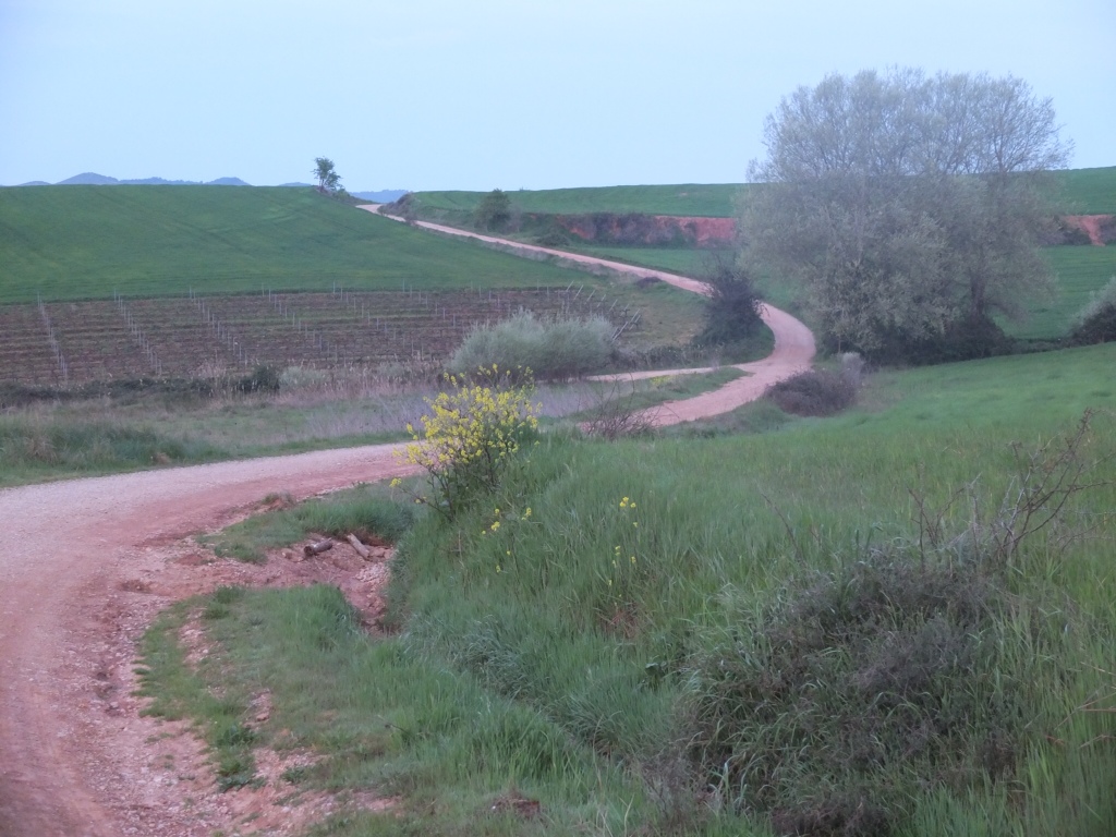 Another thing happened yesterday. I got lost. It was dark, I missed a way marker, and I got well and truly lost in the dark. I finally made my way back, found what I thought was the right track, and headed off. But again, a few kms along and not having seen any of the arrows, I began to believe I was lost again. I’d seen a couple of the blokes from the previous night’s albergue heading down this path, but they’d disappeared. Then I saw them on another track, running parallel to mine.