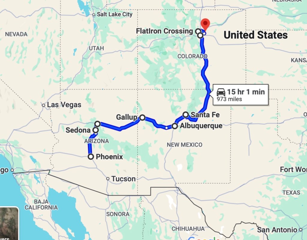 In 17 days I’ve driven 1875 miles, or 3,017 kms through Arizona, New Mexico, Colorado, Texas and Florida.